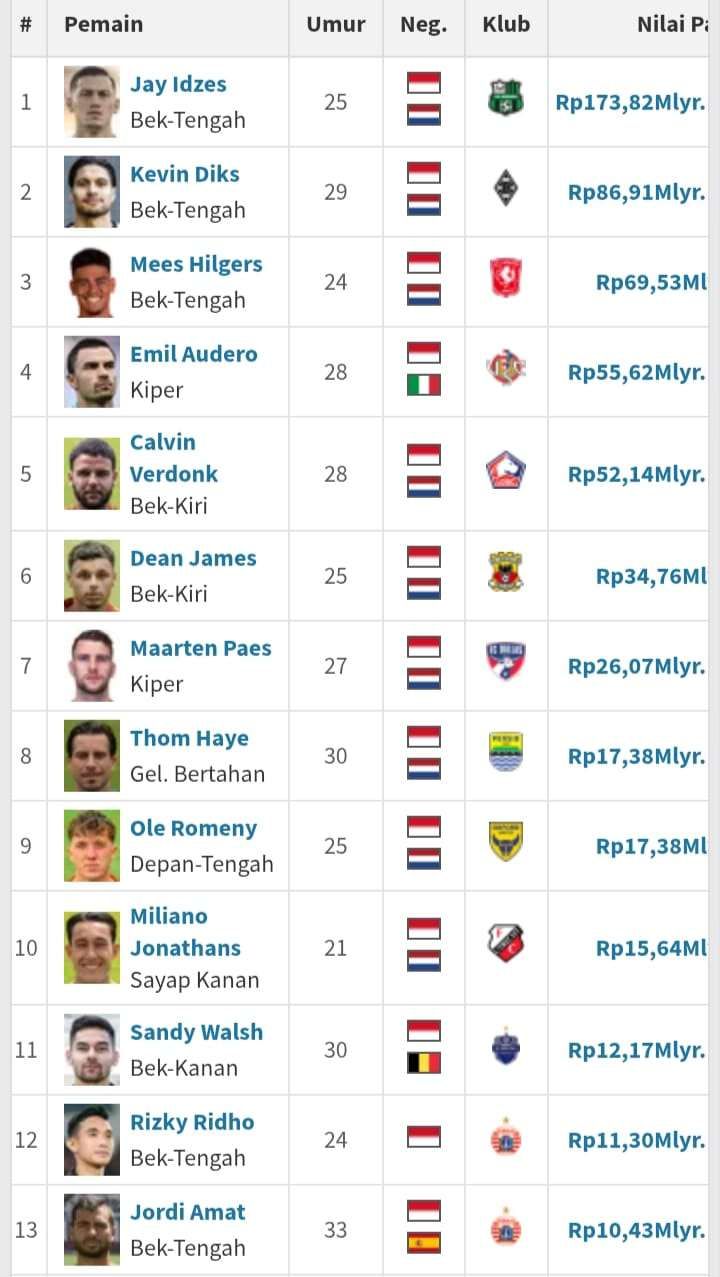 1 : Jay Idzes - Rp 173,82 M.