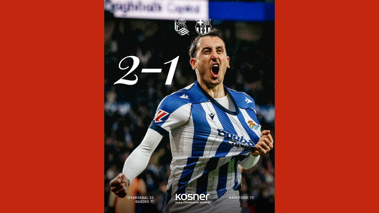 Tuan rumah berhasil membuka keunggulan melalui penyelesaian klinis Mikel Oyarzabal tepat pada menit ke-32 di babak pertama. Gol tersebut tercipta setelah sang kapten memanfaatkan celah kosong di lini pertahanan Barcelona yang tampak sedang sangat lengah.