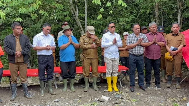 KBRN, Doloksanggul: Bupati Humbang Hasundutan, Oloan Paniaran Nababan, bersama masyarakat Desa Sampetua dan Desa Batu Nagodang Siatas Kecamatan Onan Ganjang melaksanakan doa bersama di sekitar lokasi pembangunan jembatan jalan alternatif menuju Desa Batu Nagodang Siatas, Senin (29/12/2025).
