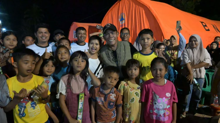 KBRN, Tapteng: Bupati Tapanuli Tengah (Tapteng) Masinton Pasaribu, SH, MH, merayakan malam pergantian Tahun 2025 ke Tahun Baru 2026, di Posko Pengungsian bersama masyarakat yang terdampak bencana banjir bandang dan tanah longsor di lokasi Pengungsian Lapangan Kebun Pisang Kecamatan Badiri, pada Rabu (31/12/2025) malam.