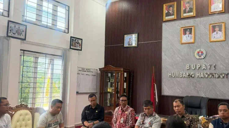 KBRN, Doloksanggul: Bupati Humbang Hasundutan Oloan P. Nababan, menerima tim asistensi percepatan Jitupasna dan R3P Badan Nasional Penanggulangan Bencana (BNPB). Tim BNPB dipimpin Ibu Frisca Saragih Bersama tim yakni Vica, Ria, Wira Harahap, Wahyu, Bjessy dan Ammar. Tim dimaksud diterima Bupati Humbang Hasundutan di Ruang Kerja Bupati, Kantor Bupati Humbang Hasundutan Kompleks Perkantoran Bukit Inspirasi doloksanggul, Jumat (2/01/2026).