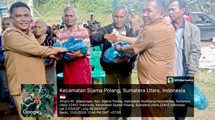 KBRN, Humbahas: Pemerintah Kabupaten Humbang Hasundutan menyerahkan bantuan sembako kepada masyarakat terdampak bencana di Desa Sitapongan dan Desa Sanggaran I, Kecamatan Sijamapolang, pada Senin, (12/1/2026).