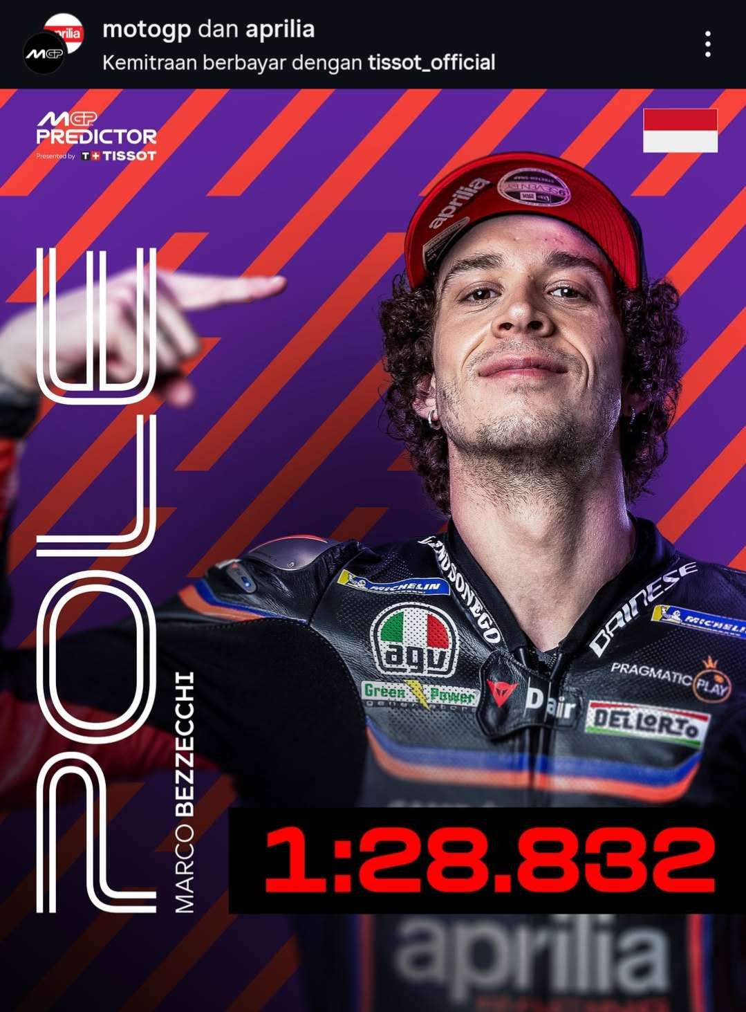 KBRN, Indonesia: Pembalap Aprilia Racing, Marco bezzecchi berhasil meraih pole position GP Indonesia pada Sabtu (4/10/2025) siang hari WIB.